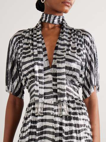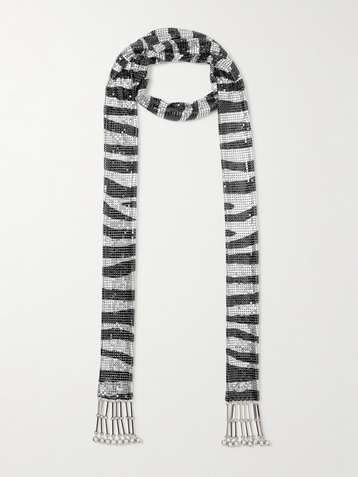 Fringed zebra-print chainmail scarf