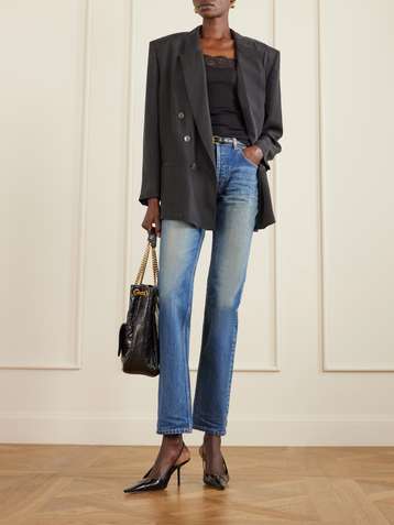 Double-breasted silk-habotai blazer