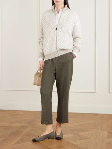 Jacquard-knit cashmere cardigan
