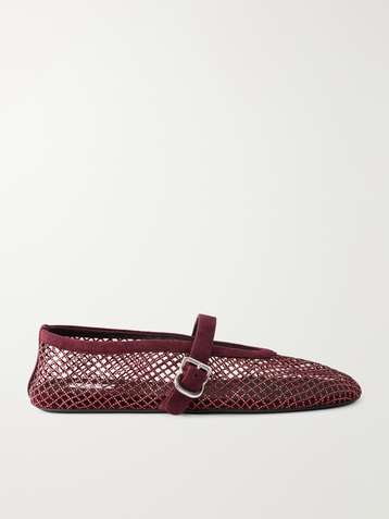 Patent leather-trimmed mesh ballet flats