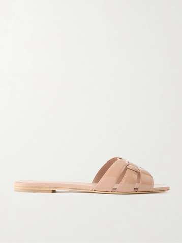 Tribute woven patent-leather slides