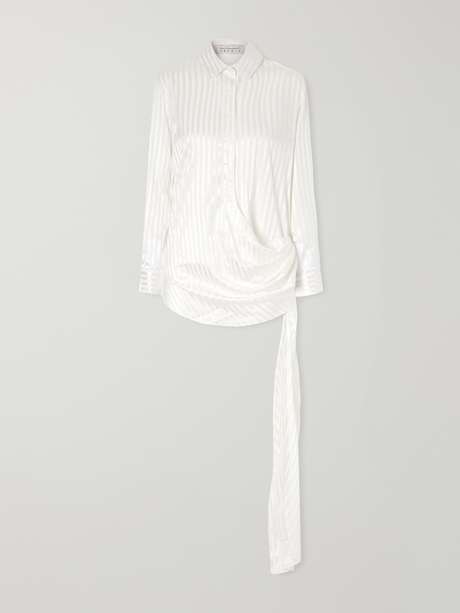 ABADIA Scarf-detailed striped stretch-silk satin blouse