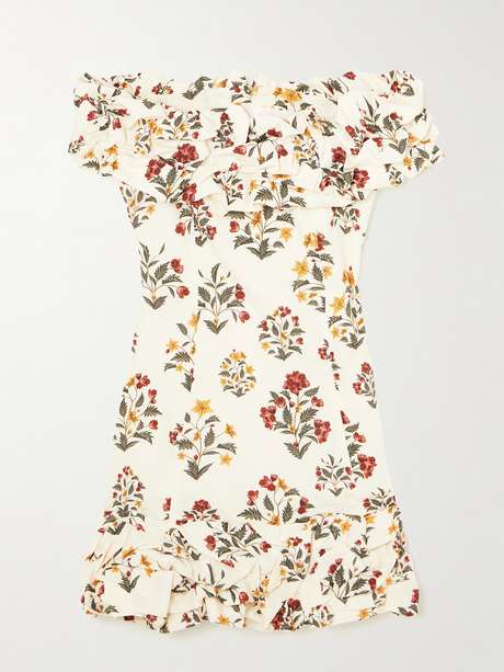 Agua by Agua Bendita's collections are rich with vivid prints inspired by the lush beauty of the label's native Latin America. This 'Jardín Andes' mini dress is made from cotton and is trimmed with flouncy ruffles at the off-the-shoulder neckline and hem.