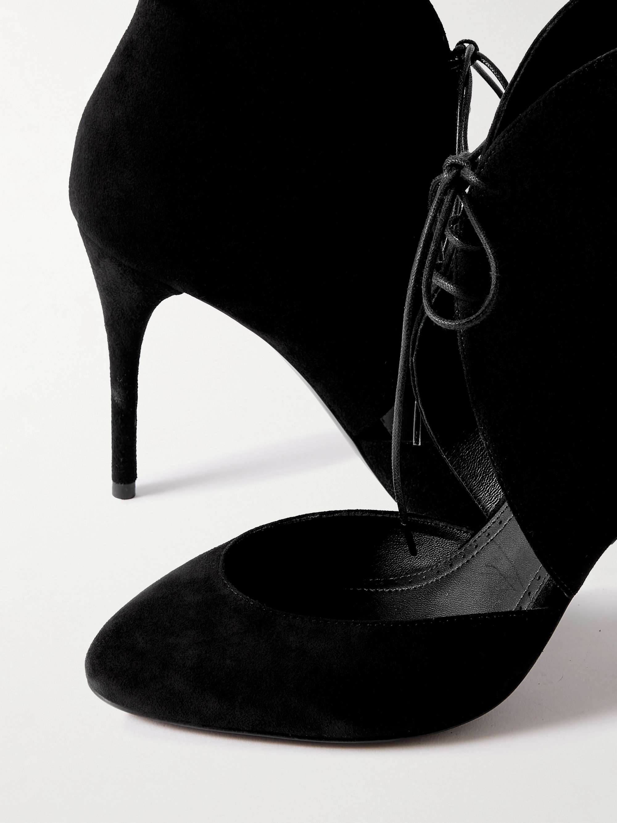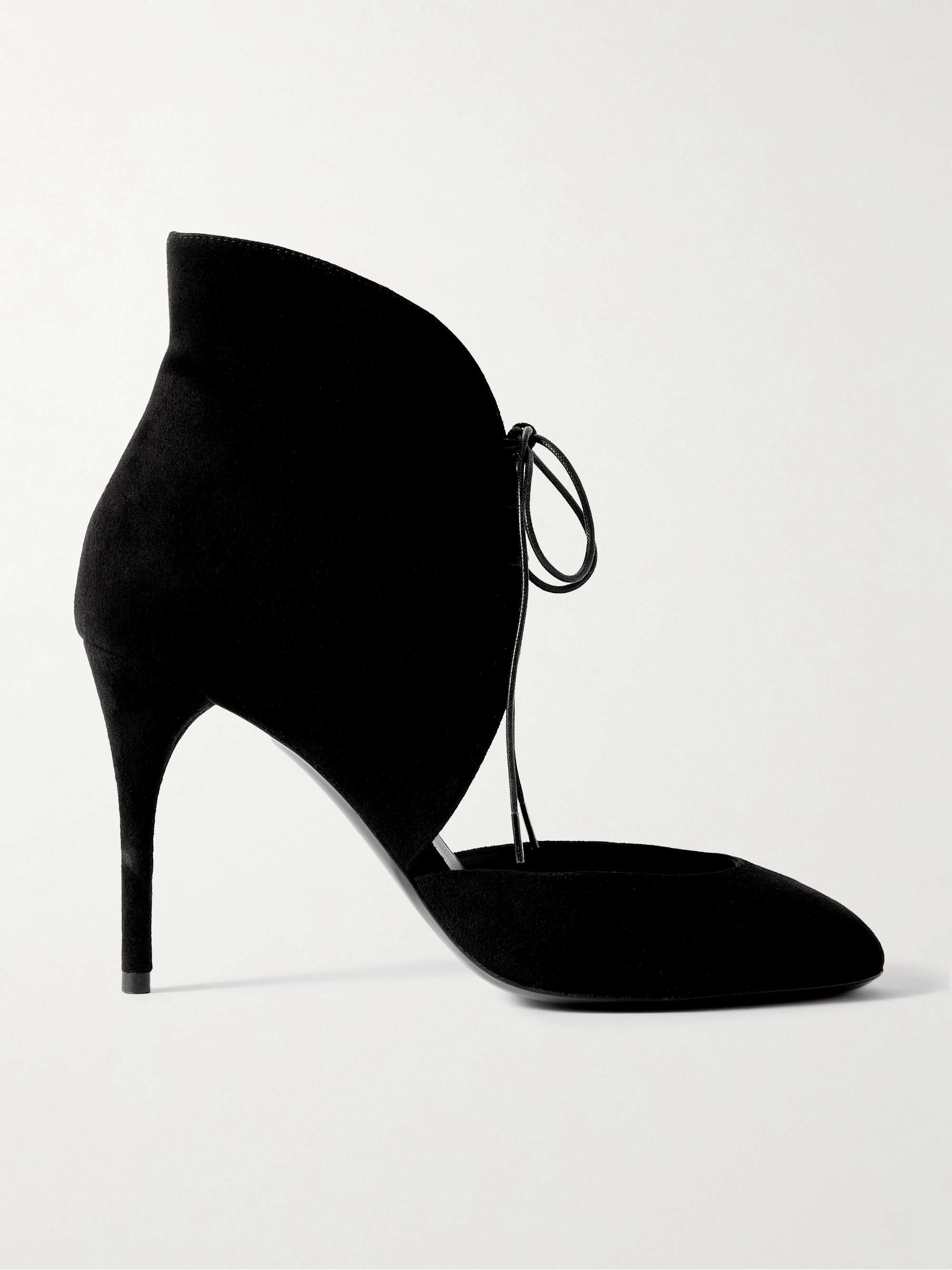 Alaïa’s shoes sit halfway between pumps and ankle boots. They’re made from smooth suede with cutouts at the arches and have lace-up fronts and slender 95mm stiletto heels. Wear yours with mini dresses and tailored pants.