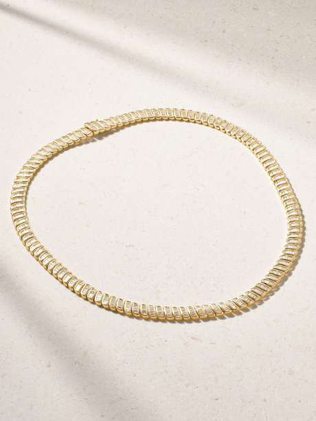 11.00-carats of radiant baguette-cut diamonds pull the sculptural, curved links of Anita Ko's 'Zoe' necklace into focus. Designed to lie flat against your collarbone, it's crafted from 18-karat gold and polished to a light-catching shine.