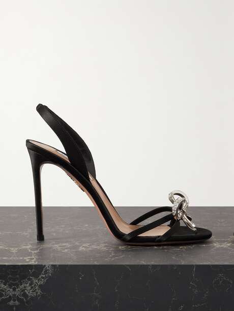 AQUAZZURA Babe 105 embellished satin slingback sandals