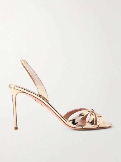 Aquazzura’s shoes are designed in the label’s Florence headquarters and then brought to life using traditional techniques in Tuscan workshops. These elegant ‘Tati’ slingback sandals are made from metallic leather with slim, overlapping straps and rest on 85mm stiletto heels.