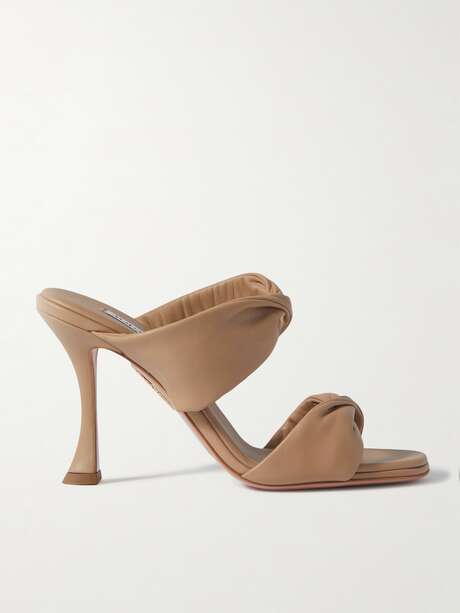 Aquazzura's 'Twist' sandals are defined by their sculptural 95mm heels. Set on cushioned soles, this pair has been made in Italy from soft leather that's artfully twisted across the vamp. Show them off with cropped cuffs.