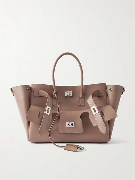 Balenciaga's 'Bel Air' tote is designed with functioning snaps and buckles so you can adjust the trapeze shape to fit more (or less) inside. This small version has been made in Italy from smooth leather and is detailed with gold-tone hardware throughout. Use it to carry your wallet, sunglasses case and cosmetics pouch.