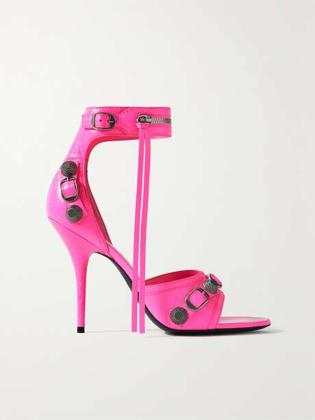 Balenciaga's 'Cagole' sandals showcase the same hardware you'll recognize from the iconic bag of the same name. Made from crinkled-leather, they're embellished with sizable studs and buckles with a zipper along the ankle strap. The slim stiletto heels add 110mm of lift.
