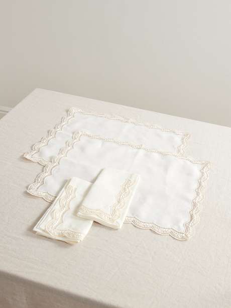 Bring Cabana's "beacon of sophisticated style" to your home with this 'Emilia' set of two placemats and napkins. They're cut from classic ivory linen, hand-embroidered in Tuscany and finished with pretty scalloped edges.