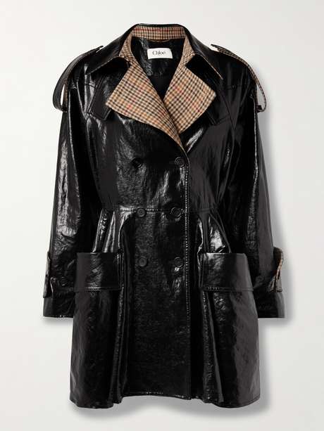Creative Director Chemena Kamali says that Chloé's romantic Winter '25 collection is interwoven with "the memories of bygone eras," so every piece possesses a certain vintage charm. Shown on the runway, this double-breasted coat is crafted from glossy coated-linen and has houndstooth wool-blend lapels. Cinch the waist with a belt to highlight the peplum hem.