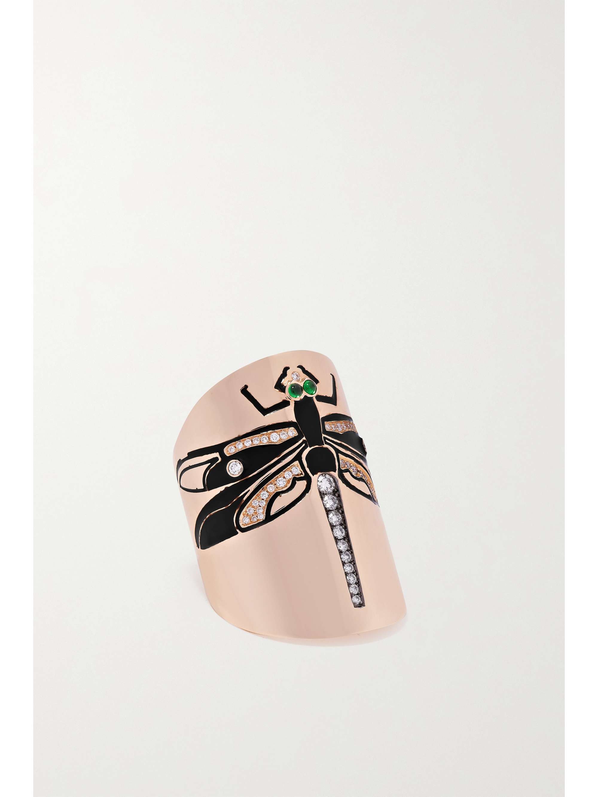 DIANE KORDAS Dragonfly 18-karat rose gold, diamond, tsavorite and enamel ring