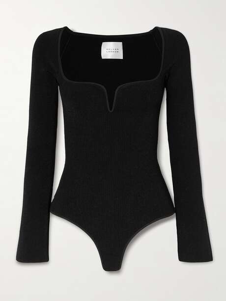 Not your ordinary bodysuit, Galvan's 'Gaia' style is designed with a sculptural neckline that curves and dips into a sharp V-shape. It's made from sculpting ribbed-knit and designed to be bra-friendly. It's as versatile as any staple but far from boring so have fun with your styling.