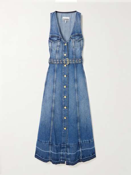GANNI's midi dress is made from denim that's woven from TENCEL™ Lyocell, a wood-based fiber created with closed-loop technology. It has a deep V-neckline, belted waist and frayed hem that adds to the vintage appeal. Wear yours solo or layered over a blouse.
