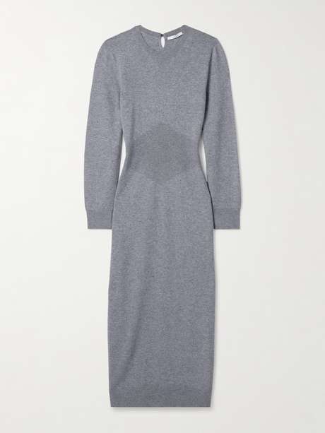 Givenchy's dress is defined by the diamond-shaped ribbed panel at the waist, which draws the eye inward. It's been made in Italy from sumptuous cashmere and has a thigh-grazing split. Wear yours with leather boots or metallic pumps.