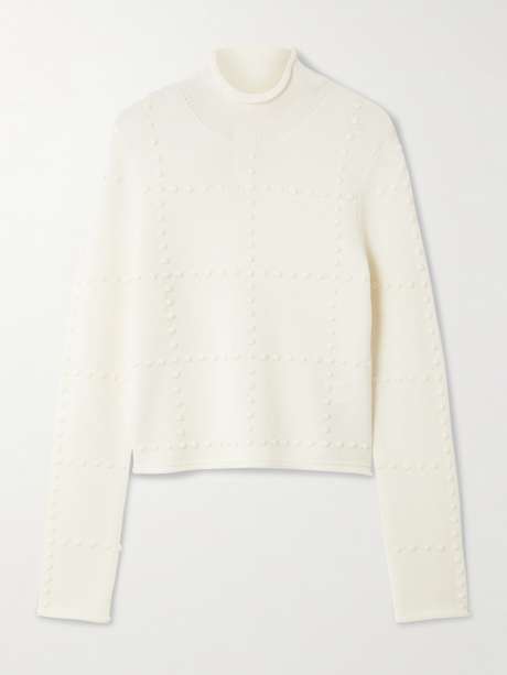 Guest in Residence's 'Popcorn' top is named for its textured spot design. It's knitted from a blend of wool and cashmere for a close fit with a turtleneck and rolled edges. Wear yours with high-waisted jeans.