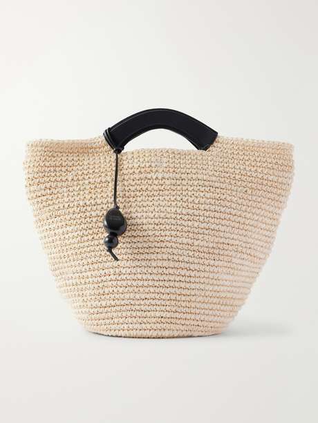 HUNTING SEASON Shopper large leather-trimmed woven raffia tote