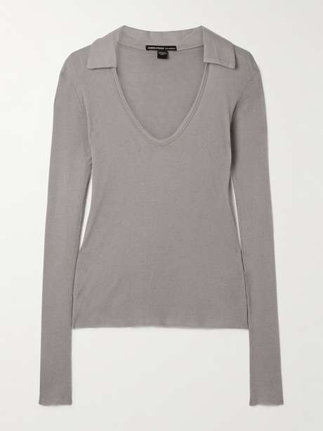 JAMES PERSE Ribbed cotton and cashmere-blend polo shirt