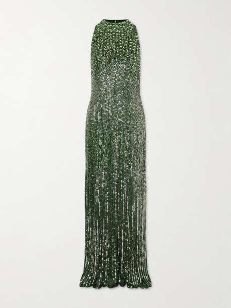 EXCLUSIVE AT NET-A-PORTER. Jenny Packham is known for glamorous, evening-ready designs. The 'Benue' gown is crafted from mesh densely embellished with sequins that catch the light, shaped with a halterneck that frames the shoulders.