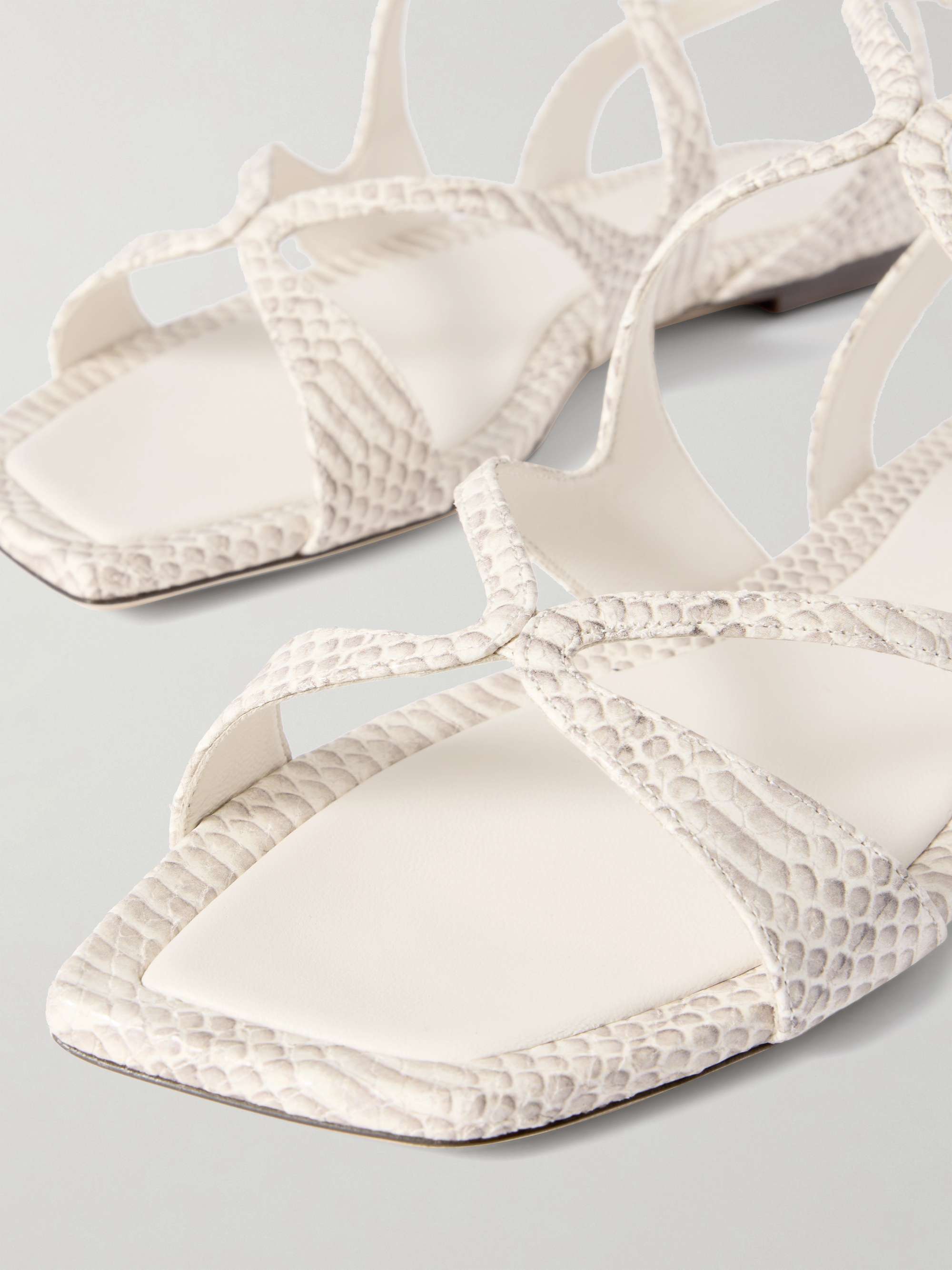 The straps on Jimmy Choo's 'Ayla' sandals frame your foot prettily. They've been made in Italy from snake-effect leather and have square toes and softly padded soles for comfort.