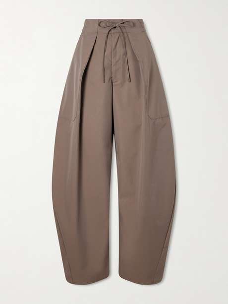 Kallmeyer's 'Clemence' pants are made from panels of cotton-blend twill in a barrel-leg shape, which is so popular right now. They're topped with adjustable ties at the paper-bag waist and have sharp pleats that enhance the volume.