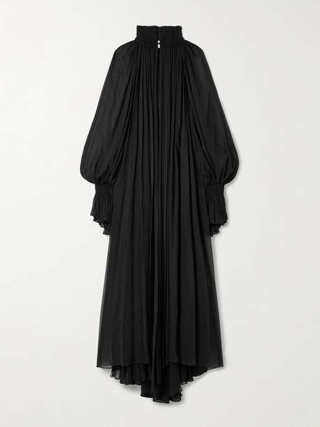 KHAITE's 'Edgar' maxi dress is made from airy silk-chiffon that's tightly gathered at the neckline and cuffs to create delicate folds. Temper the sheer finish with a tonal slip or undergarments.