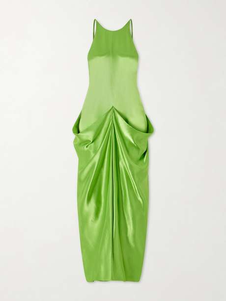 Sleek and evening-ready, KHAITE's 'Kent' dress feels instantly refined. It's cut from glossy satin that drapes across the body in soft folds and catches the light like water. Style it with sculptural earrings and barely-there heels.