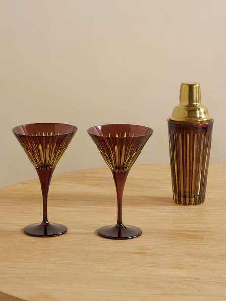 L'Objet's cocktail set will make an elegant addition to any home bar. Part of the brand's 'Prism' collection, it includes a shaker and two martini glasses, each one carved for a light-catching finish. It's housed in a logo-stamped box, making it the perfect housewarming gift.