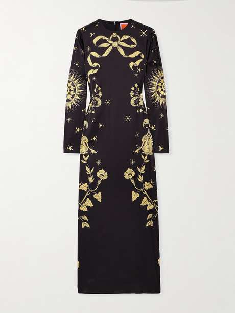 La DoubleJ's collections are defined by romantic details and exuberant prints, making them perfect for special occasions. This dress is cut from satin for a figure-skimming fit and decorated with an ornate pattern.