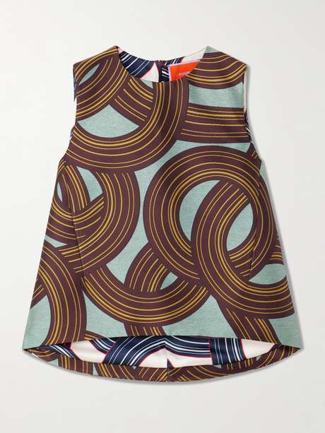 La DoubleJ's 'Icon La Scala' top is made from satin that's jacquard-woven with artful swirls. It's designed for a loose, trapeze shape that's slightly longer at the back and has a high neckline.