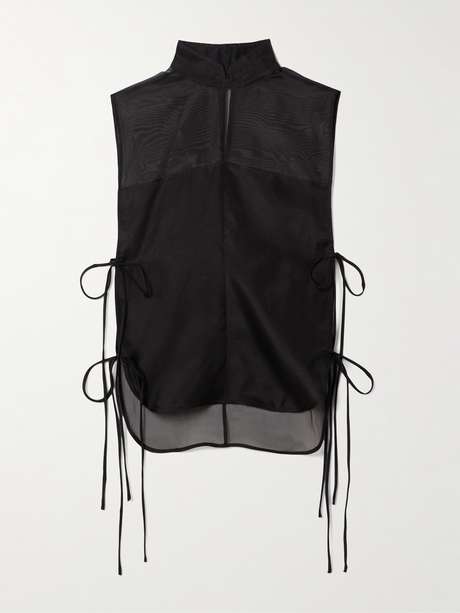 Le Kasha’s ‘Anzio’ top showcases the brand’s ethereal aesthetic. Made from sheer silk-tulle, it’s cut in a tabard style with open sides and delicate ties.