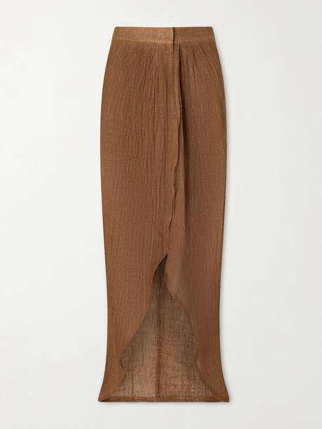 Rooted in a spirit of travel and crafted from exceptional natural fibers, Le Kasha approaches linen with ease and lightness. The 'Kamat' skirt is cut from airy linen in an elongated silhouette; its clean lines and effortless drape move softly through sun-soaked days.