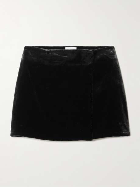 Le Kasha's 'Skarduv' skirt is cut from plush velvet that catches the light with its soft sheen. Designed in a mini shape, it has a wrapped front for a layered look.