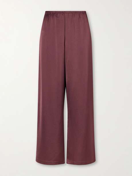 LESET's burgundy 'Barb' pants are designed with both comfort and style in mind. Cut from soft and fluid satin, this high-rise pair falls to a relaxed wide-leg shape. They're an effortless match to the coordinating top.