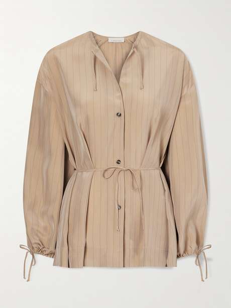LIBEROWE Ellis tie-detailed wrap-effect pinstriped satin shirt