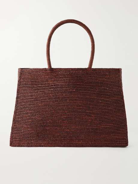 LIÉ STUDIO's 'The Charlotte' tote has been woven in Madagascar from raffia in a structured rectangular shape. It is topped with handles and trimmed with leather straps that tie to fasten, offering space for your beach towel, sandals and SPF.