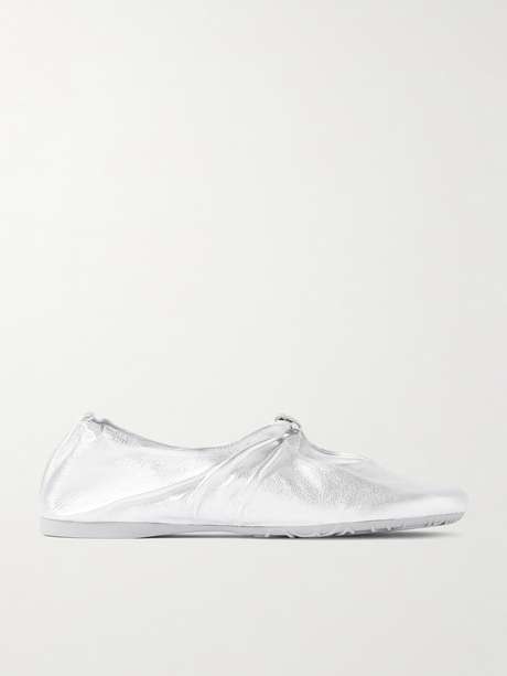 A beautiful take on ballet styles, Loewe's flats look like they're draped in metallic leather with intentional folds throughout. They feature a twisted strap with the brand's 'Pebble' hardware and squared toes.