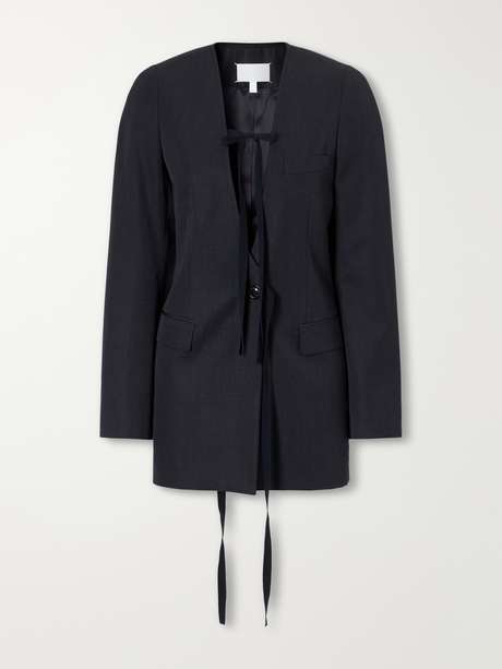 Maison Margiela brings a conceptual approach to classic tailoring. This blazer is cut from wool in a structured silhouette, detailed with ties that introduce a deconstructed, directional element.