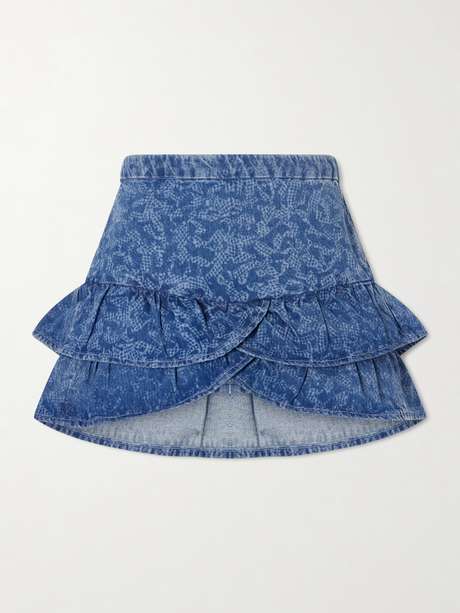 Marant Étoile reimagines classic denim with a bohemian slant. Made from cotton, the 'Leyje' skirt has a ruffled hem and is printed with faded geometric shapes. Style it with boots.
