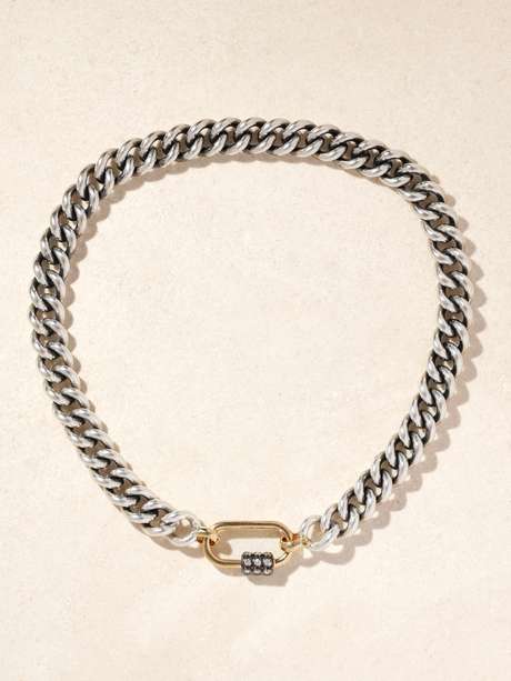 Marla Aaron’s pieces can be easily recognized by their distinctive lock fastening - this 14-karat yellow version is from the 'Consuelo' lineup and shimmers with 1.06-carats of diamonds. It's strung on an18-inch 'Mega Curb' chain that's handmade from sterling silver. Match the brand's maximalist aesthetic and layer yours with its other styles.