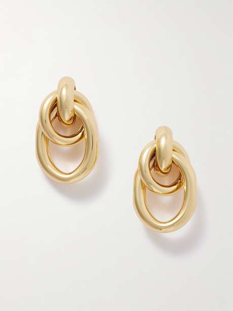 Martha Calvo's 'Ami' earrings are designed to look like three styles knotted and stacked perfectly together. They're made from gold-plated metal and have a nearly jaw-grazing 1.5-inch length.