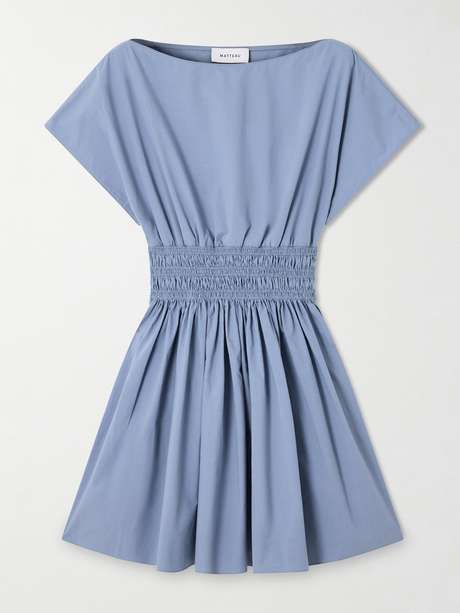 Matteau's dress is made from organic cotton and has an elegant batteau neckline and shirred waist that defines your figure. Discreet pockets in the A-line skirt enhances its casual feel.