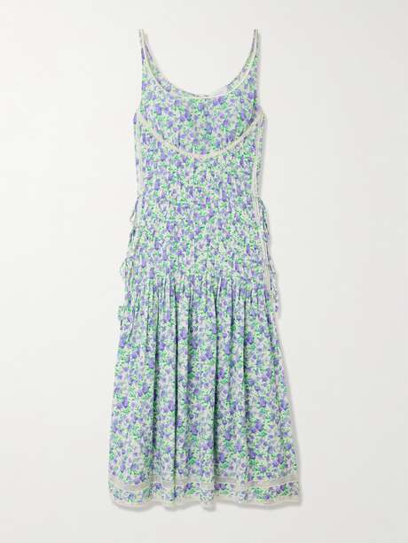 Rabanne's dress reflects the house's architectural approach to romantic designs. Made from silk printed with pretty florals, it’s framed by dainty lace trims and has adjustable ties.