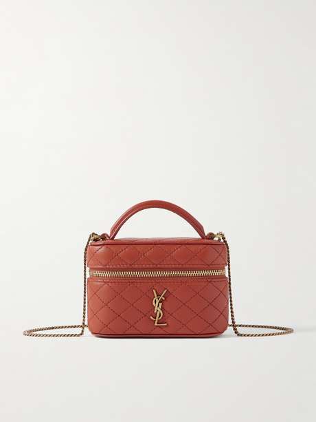 Like many of the designs in SAINT LAURENT's 'Gaby' collection, this micro bag is made from smooth quilted leather and embellished with its iconic gold-tone 'Cassandre' logo. It will accommodate all of your small essentials, including your keys, cards or earbuds. Carry it by the top handle or style it cross-body with the detachable chain strap.