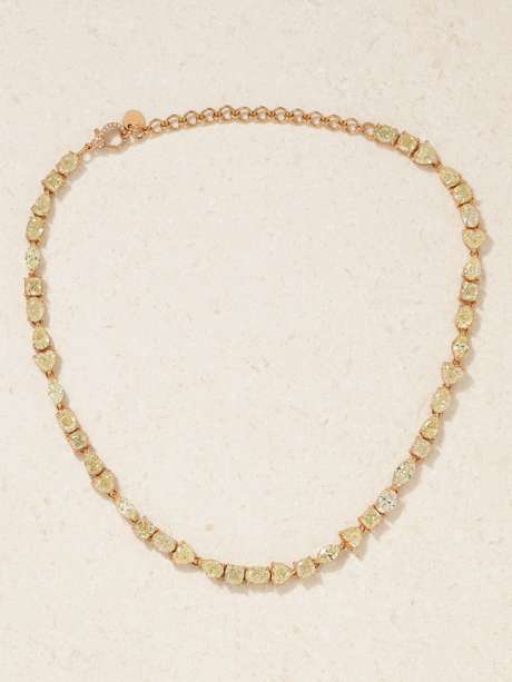 SHAY's necklace takes a contemporary approach to traditional tennis styles. It's handmade from 18-karat gold and set with 15.85 carats of shimmering yellow diamonds in a variety of cuts. Adjust it to your preferred drop.