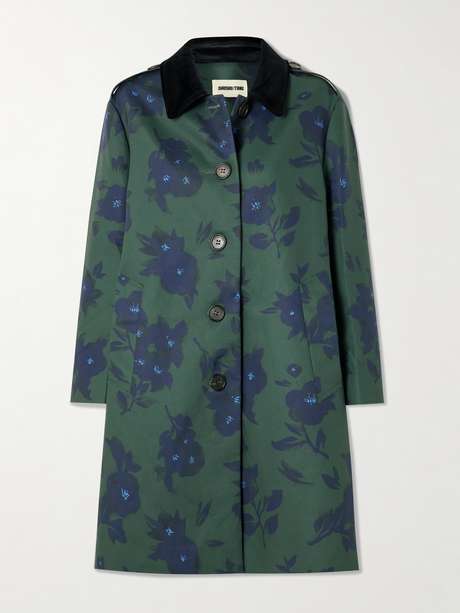 SHUSHU/TONG Velvet-trimmed floral-print woven trench coat