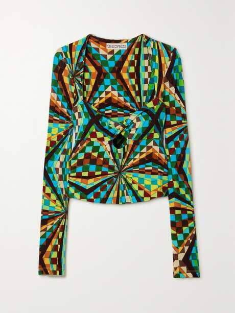 SIEDRÉS Divy twist-front cutout printed stretch-jersey top