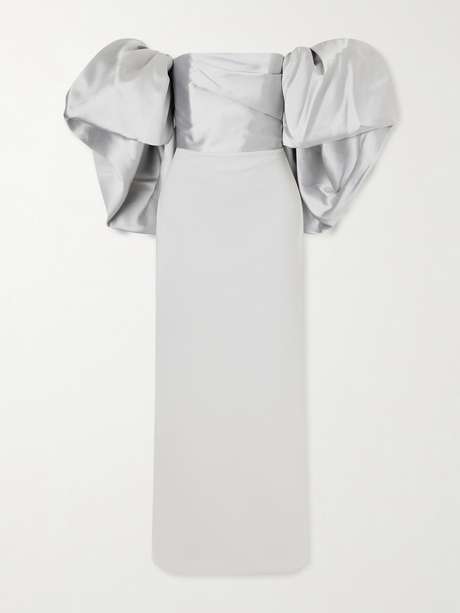 SOLACE LONDON Floris off-the-shoulder satin-twill and crepe maxi dress