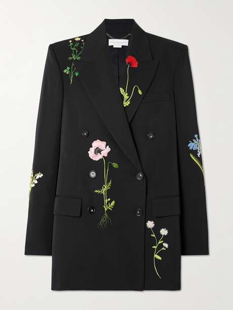 Stella McCartney's blazer has an ethereal quality thanks to the detailed floral embroidery. Tailored from wool, it's designed for an empowering oversized fit with sharp shoulders and peak lapels. Use the flap pockets to store a lip balm or credit card.